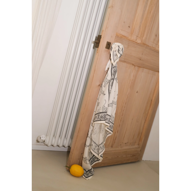 Ce foulard est confectionné artisanalement grâce à la technique indienne du block-print, les couleurs sont réalisées à partir de pigments naturels. Cette confection manuelle peut entraîner certaines irrégularités qui en font le charme en le rendant unique ♡