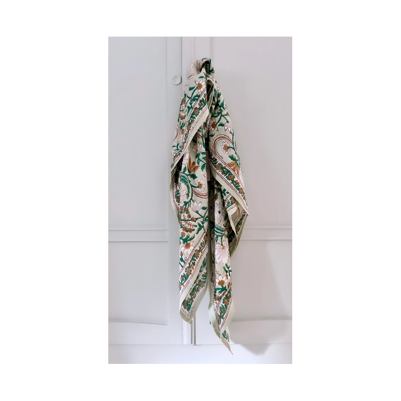 Ce foulard est confectionné artisanalement grâce à la technique indienne du block-print, les couleurs sont réalisées à partir de pigments naturels. Cette confection manuelle peut entraîner certaines irrégularités qui en font le charme en le rendant unique ♡