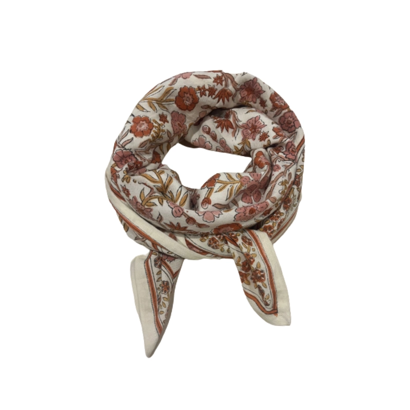 Ce foulard est confectionné artisanalement grâce à la technique indienne du block-print, les couleurs sont réalisées à partir de pigments naturels. Cette confection manuelle peut entraîner certaines irrégularités qui en font le charme en le rendant unique ♡