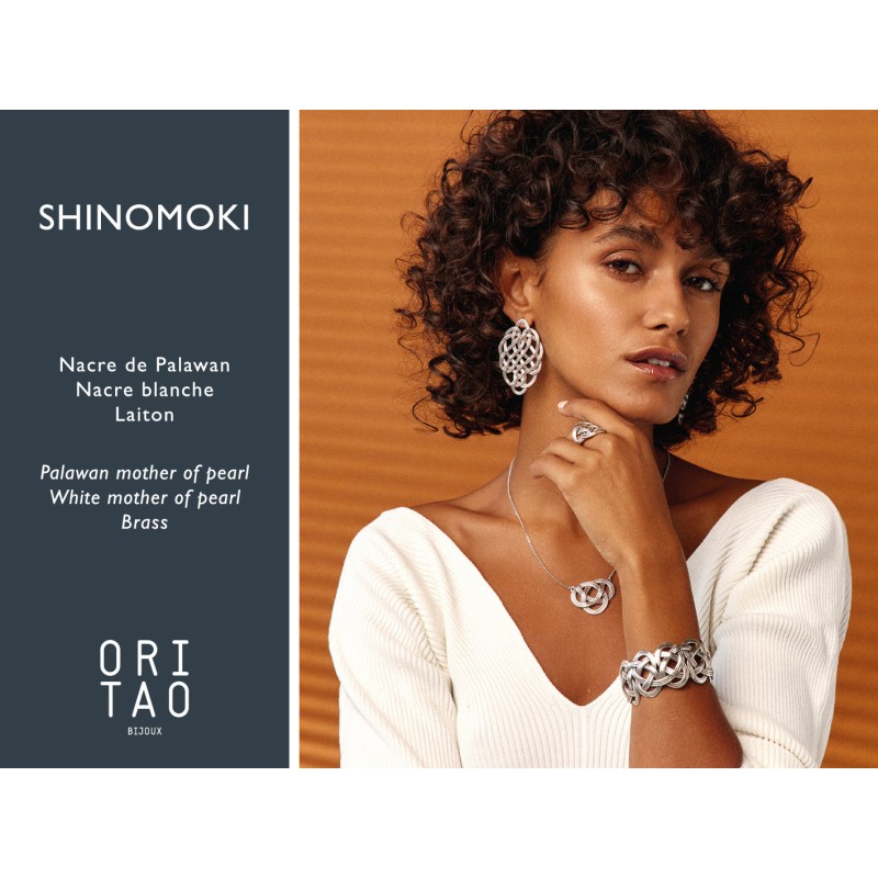 La collection Shinomoki d’Ori Tao explore l’art du tressage métallique en s’inspirant des techniques de vannerie ancestrales. Conçue en laiton plaqué or et argent, cette ligne de bijoux présente des motifs entrelacés qui rappellent le savoir-faire traditionnel, sublimés par l’éclat de la nacre de Palawan et de la nacre blanche. Idéale pour celles qui souhaitent apporter une touche d’artisanat et de raffinement à leur style.