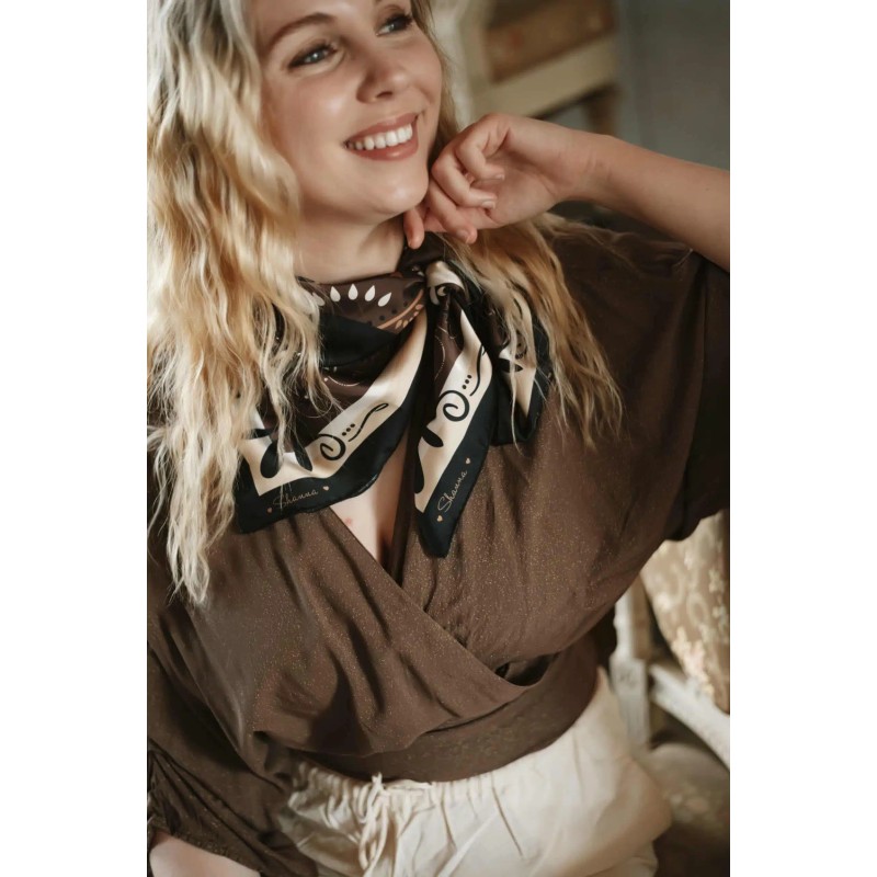 Foulard Mini Carré Love Chocolat signé Shanna.