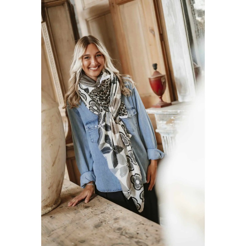 Couleurs dominantes : Ecru, Taupe, Gris clair, petit Léopard Noir/Gris.