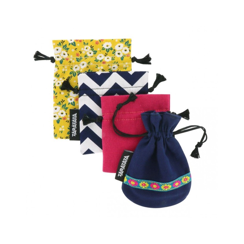 Chacun des bijoux TARATATA est livré avec une pochette en tissu aux motifs sans cesse renouvelés.