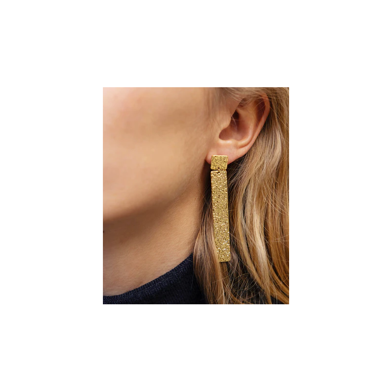 Boucles d'oreilles Brava signées ZAG Bijoux en acier martelé et doré à l'or fin.