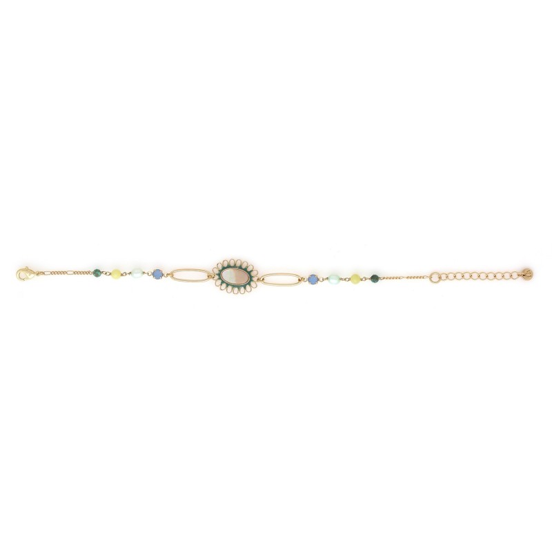 Bracelet Ajustable Zélie signé FRANCK HERVAL accompagné de son médaillon nacre ovale.