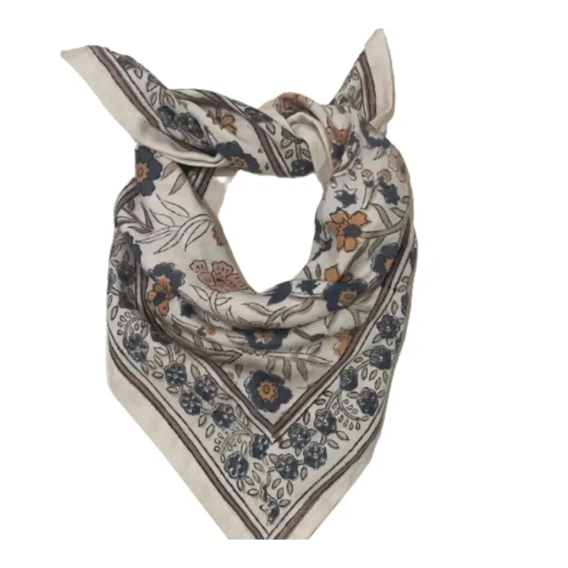 Ce foulard très souple et doux est confectionné artisanalement grâce à la technique indienne du block-print, les couleurs sont réalisées à partir de pigments naturels.