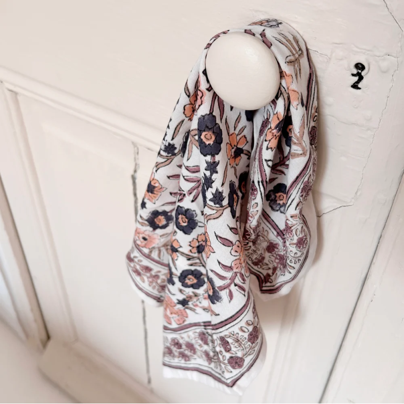 Ce foulard est confectionné artisanalement grâce à la technique indienne du block-print, les couleurs sont réalisées à partir de pigments naturels. Cette confection manuelle peut entraîner certaines irrégularités qui en font le charme en le rendant unique ♡