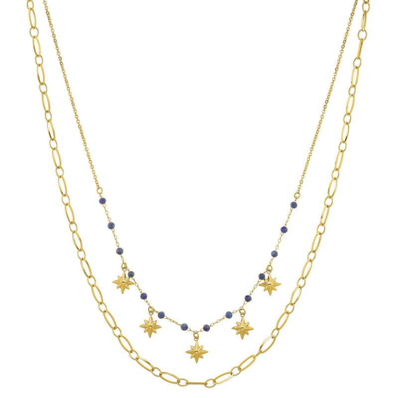 Collier 2 rangs en Acier doré & Lapis Lazuli.